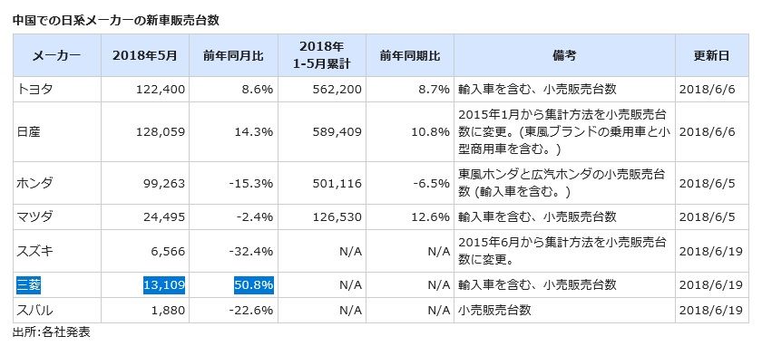 ・日系メーカー4社は、6日までに5月の中国新車販売台数を発表した。日産、トヨタの販売増加が継続している。日産が2桁増となり4社の中で販売台数首位となった。