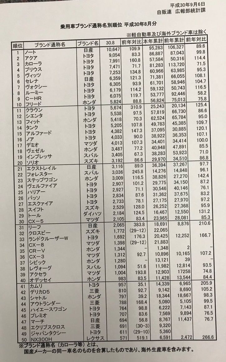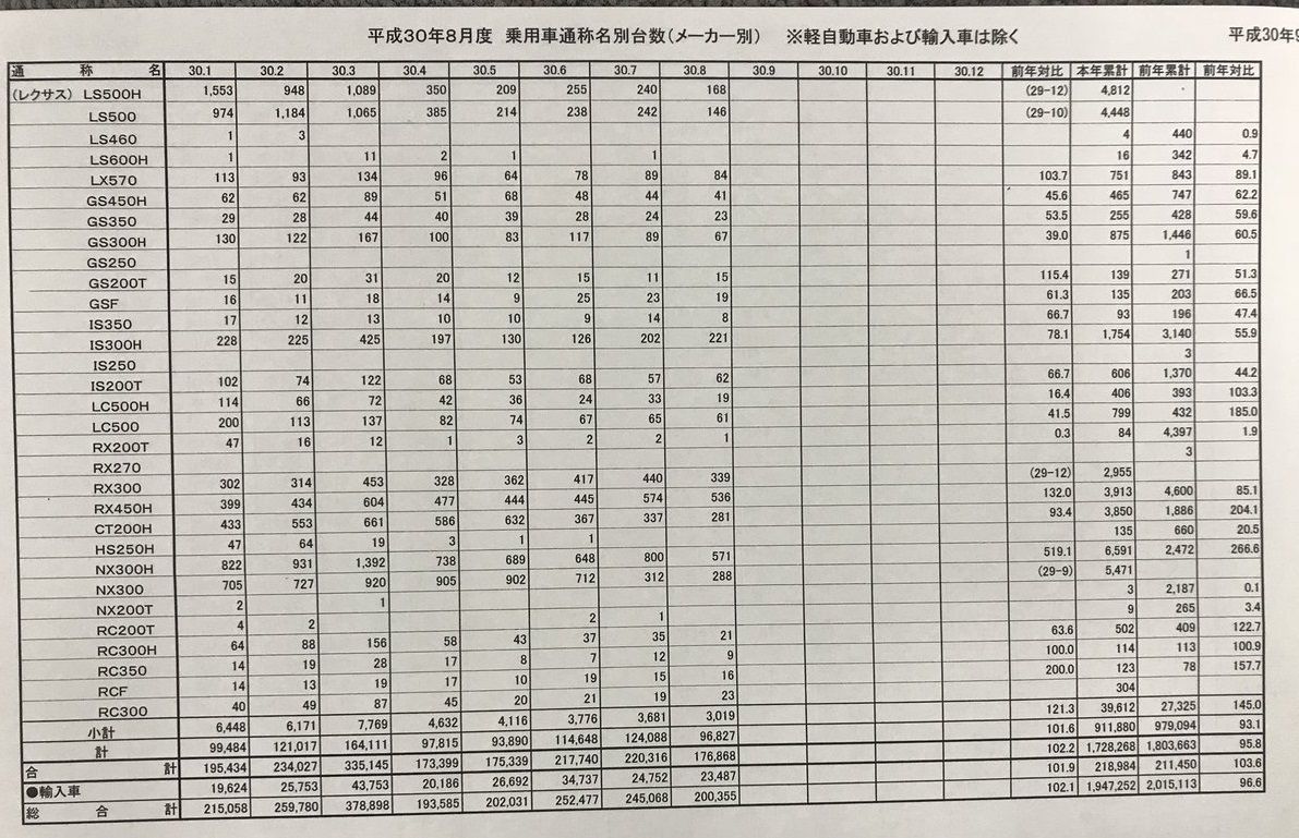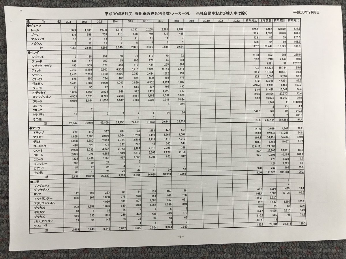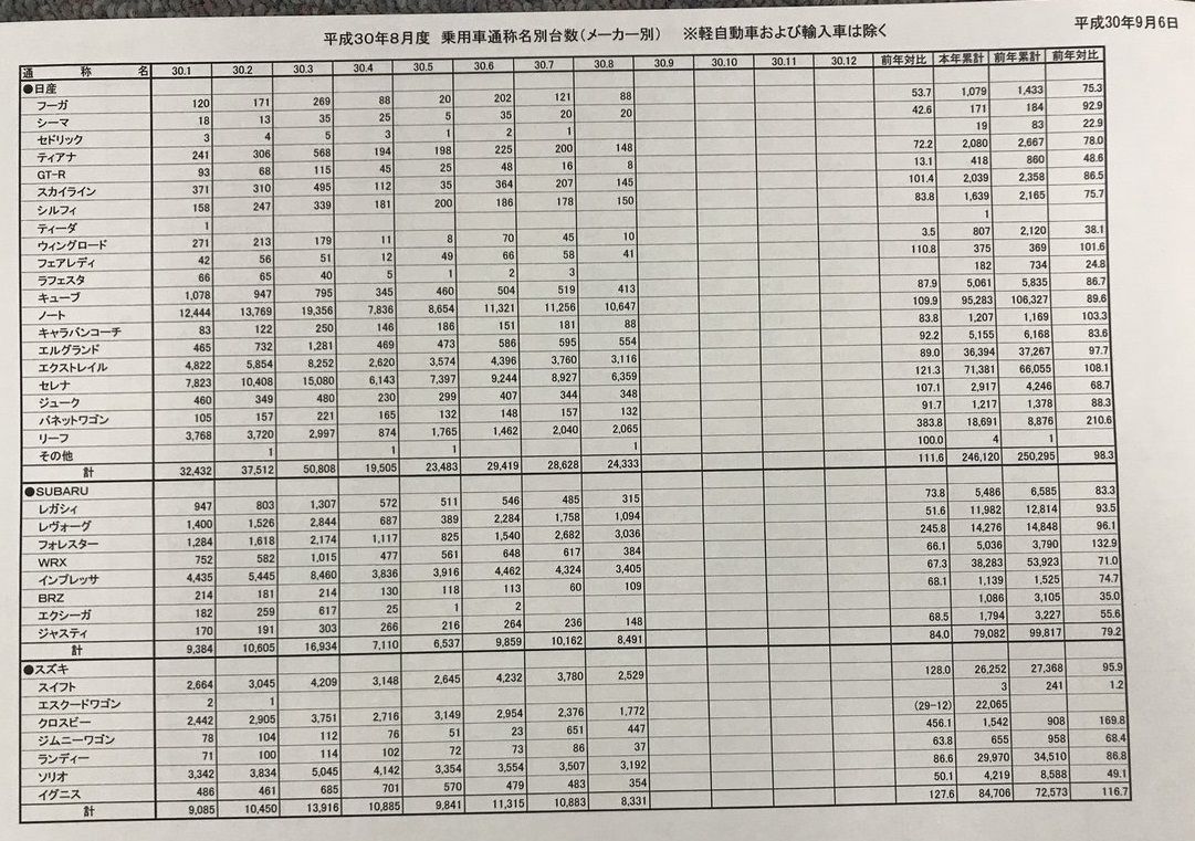 今月もマガジンXさんが、国内新車販売の詳細資料をツィートしてくれました。