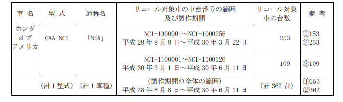 【#リコール】「ホンダオブアメリカ NSX」について、9月6日、HONDA OF AMERICA MFG.,INC.からリコール届出がありました。使用者には同社からダイレクトメール等で通知されます。速やかに改善措置を受けてください… https://t.co/5kHuVTehq8