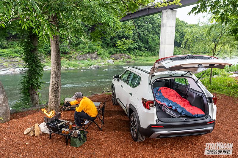 長さ不足はアイデアで解消、快適な就寝スペースが楽々完成! ホンダの最新SUVとしてデビューした「WR-V」は、現実的で手が出しやすい車両価格と使い勝手の良さが魅力のコンパクトSUV。ホンダのコンパクトSUVといえば「ヴェゼル」があるが、サイズ感はほぼ同じ。全長は「ヴェゼル」の方が15mm長いが、全高は「WR-V」の方が70mm高い。一方で見た目は全く異なる。直線的でタフなフォルムの「WR-V」は、いかにもSUVらしくアウトドアシーンもよく似合う。そして何よりも、ラゲッジスペースの広さと積載量がクラストップレベルで、車中泊にも向いていそうなクルマなのだ。 そんな「WR-V」での車中泊は想像以上に快適! 就寝スペースの確保は前席を前にスライドして後席を倒すだけ。ただこのまま寝るのは少々厳しい。「WR-V」は荷室部分が後席よりも低くなっているため約120mmの段差ができてしまう。この段差を埋めるためにテントのインナーマットとして使用する厚手のマットとブランケットを使い高さを調整。次は長さの問題。荷室と後席の背面部分だけだと長さが1400mm程度と、大人が寝るにはかなり短い。そこで助手席と後席…