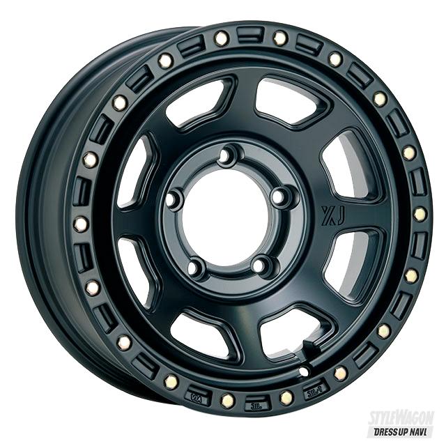 力強いスクエアホールと迫力コンケイブで魅せる! 本場アメリカの薫りに日本のトレンドを織り交ぜながら、魅力的なオフロードホイールを送り出し続けている名門ブランド、エクストリームJ。早くからシーンを牽引してきたからこその品質への信頼感や安心感はもちろんだが、その最大の魅力はオフロード感の強さ。ラインアップされるどの作品も、履けば確実にワイルドさを増せるのが特徴だから、ジムニーをオフローダーに仕上げたいときには実にココロ強い。 そんな数あるエクストリームJの作品の中でも、特にシンプルでクリーンなフェイスとなるのがXJ07。できる限り無駄を省き、シンプルに徹したのがその持ち味で、大きなコンケイブを描くフェイスには8つの台形窓を連ねたのみ。ただしこのあえてのシンプルさが、そこに秘めた無骨さや力強さ、タフさを鮮明に浮かび上がらせてくれる。まさにシンプルイズザベストを具現化した一本だ。 とは言えディテールをよく見ると、その作りは実に深くて凝ったものとなる点にも注目。スクエア窓はその断面がリブ形状となっていて、コンケイブ形状との相乗効果で立体感と表情の奥深さを演出している。円を基調としたセンター部も、…