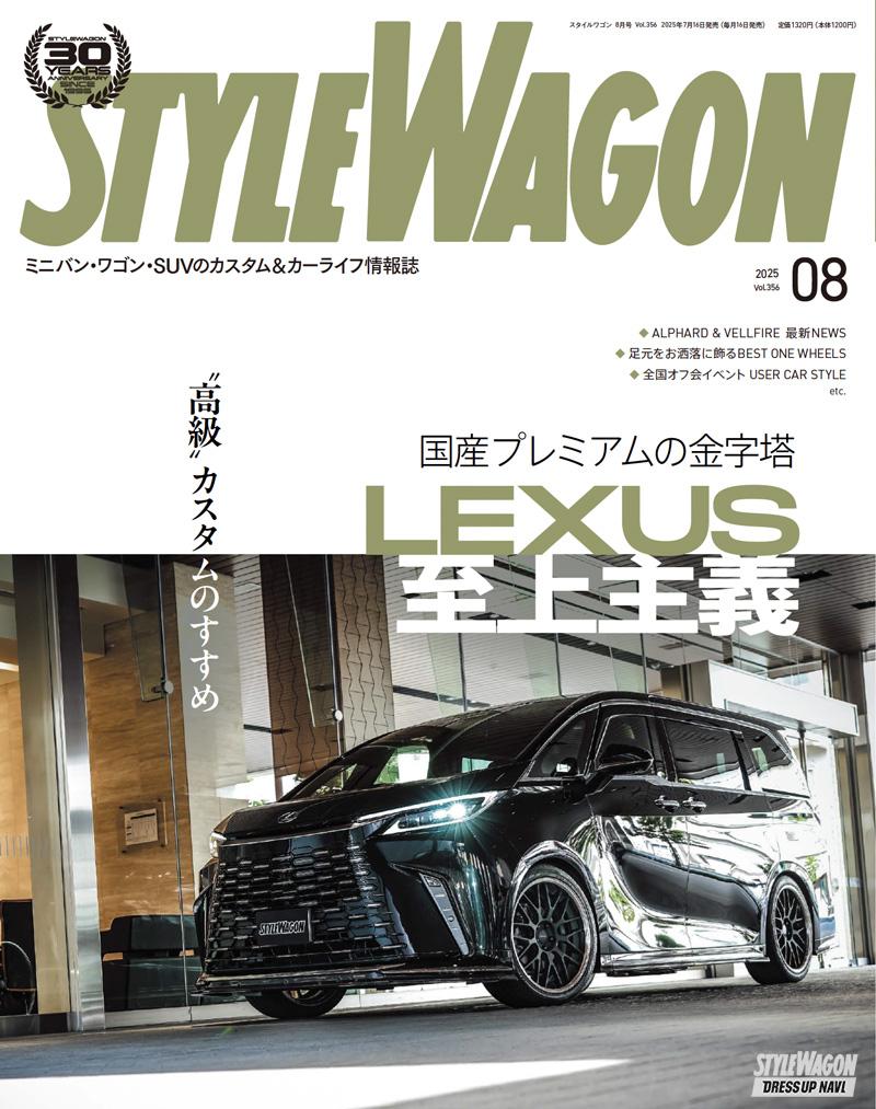 カスタムの世界、クルマを楽しむ提案を! スタイルワゴンは、ミニバン&ワゴン&SUVのカスタマイズとカーライフを提案する情報誌。この2025年に皆様のご愛好のおかげで30周年を迎えました。8月号では、30周年のアニバーサリーに合わせて、創刊初の大リニューアルを実施。ここ最近の流行に合わせて、高級感マシマシでお届けしております。特集は「レクサス」。国産最高峰の憧れのマシン達をかっこよくカスタマイズするネタを掲載。またアルヴェルをはじめ、ドレスアップを楽しんでいるユーザーの皆様も多数紹介。スタイルワゴンが心機一転で提案するカスタムの世界、そしてクルマで楽しむ提案をぜひ感じてください。 リニューアル一発目の巻頭特集は、国産最高峰ブランド「レクサス」をクローズアップ。トヨタ各車の新車納期が不透明の中、実はレクサスだと意外と早く手に入れられたりもする? 中古がお得だったりする? そんな小ネタもありの特集です。 街で溢れるミニバン王者の40アルファード&ヴェルファイア。歴代モデルも含めてカスタムシーンのいまをチェック。最新トレンドを参考にしよう。 好評連載中の「車中泊やってみた」企画では、話題の新型…