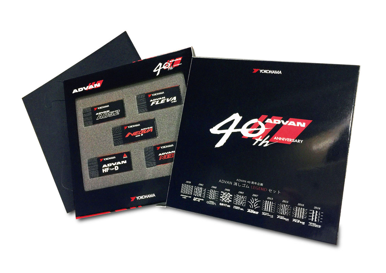 ・「ADVAN HF」(1978年発売)/「ADVAN HF Type D」(1981年発売)・「ADVAN GR-17」(1986年発売)/「ADVAN A052」(2016年発売)・「ADVAN GLOBA」(1988年発売)/「ADVAN NEOVA AD05」(1995年発売)・「ADVAN NEOVA AD08R」(2013年発売)/「ADVAN A050」(2007年発売)・「ADVAN Sport V105」(2013年発売)/「ADVAN FLEVA V701」(2016年発売)