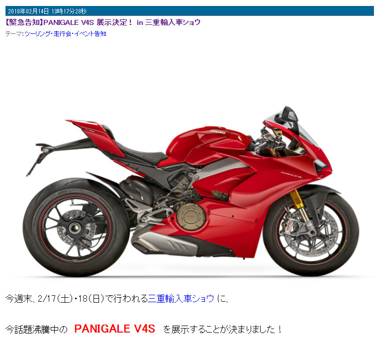 引用元:【緊急告知】PANIGALE V4S 展示決定! in 三重輸入車ショウ | ドゥカティ鈴鹿ストアマネージャーという人物の隙間