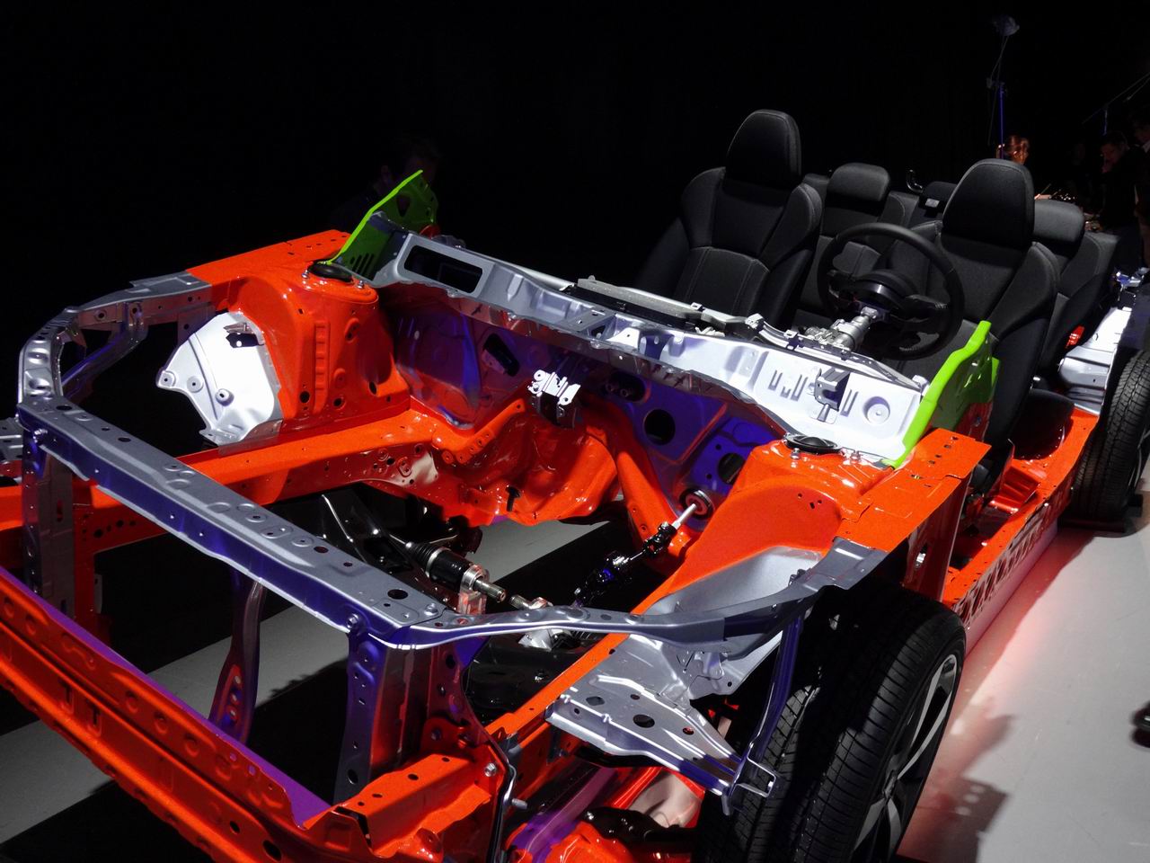 それにしても、このパッケージングをプロペラシャフトやリアデフの必要となる四輪駆動で成立させているというのは、あらためて驚きだ。富士重工業は、この次期インプレッサから新しい「スバル・グローバル・プラットフォーム」と呼ばれる基本設計を採用しているが、スバルのコア・テクノロジーである「シンメトリカルAWD(左右対称・四輪駆動)」を大前提として生まれたプラットフォームだからこそ実現できたといえそうだ。ここ最近、生産性やバリエーションの多様化を考慮した新世代プラットフォームが各社から登場しているが、そのほとんどはFWD(前輪駆動)を基本に、バリエーションとして四輪駆動も設定できるというものが多い。