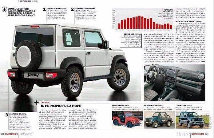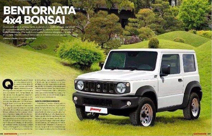 先日、日本ではSuzuki Jimny 2018の製作を撮影しました。現在は、イタリア雑誌Quattroouteの将来のページでSUVの新しい画像が流出しています。 新しいスズキジムニーはフレーム構造を維持し、その角度のデザインは1981年から1998年まで製造された第2世代モデルの精神によって支えられています。車は2トーンの色で個別化することができます。 レトロなスタイルでは、スズキジムニのインテリアも2018年に作られ、顔もそれに優勢です。同時に、マルチメディアシステムの大きなタッチスクリーンディスプレイが目立つようになります。 開発者は急いでスズキ・ジムニーの特性を明らかにするのではない。 予備的なデータによると、小型SUVには、1.2リッター92馬力のガソリン・カルテットまたは1.0リットルの112馬力のターボが装備される。