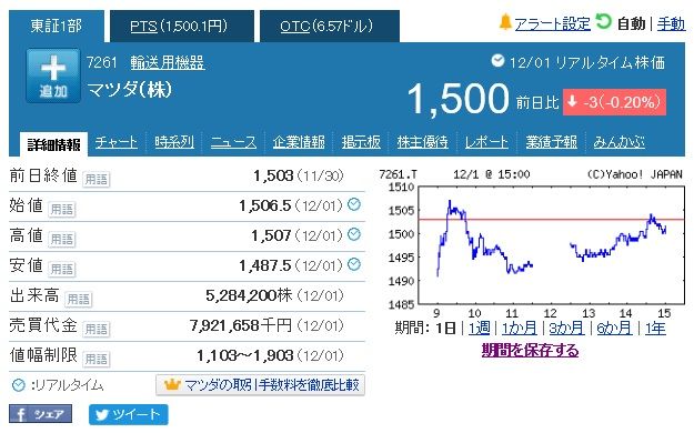 自動車株は冴えませんが、特に際立って下げているのがマツダ。