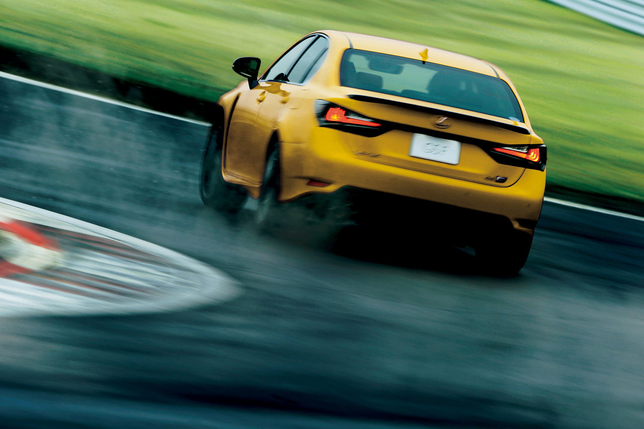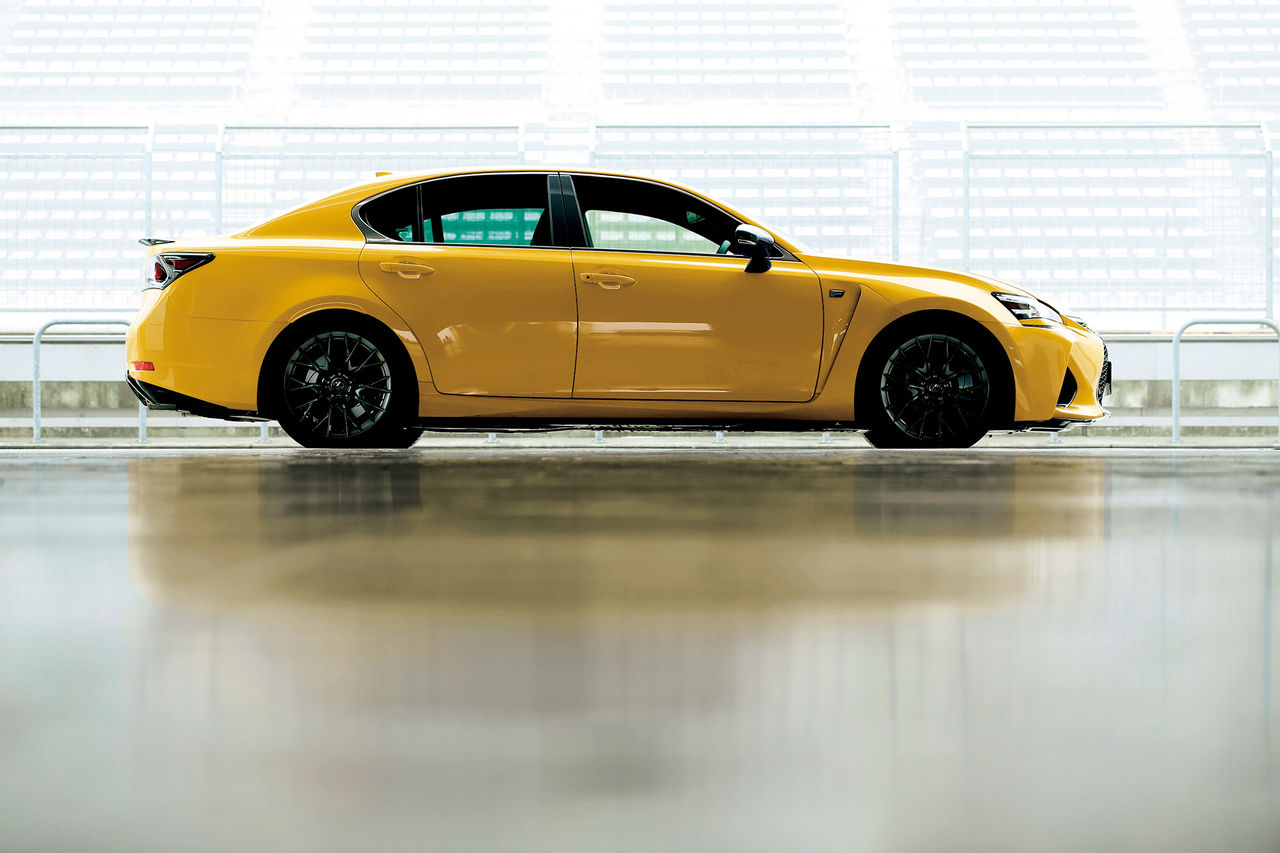 メーカー希望小売価格、11,185,000円のGS F。イエローとブラックのコントラストは、この価格帯としては子供っぽいと評価されるのか、それともハイパフォーマンスカーにふさわしいアグレッシブとスマートを表現する色として評価されるのか。